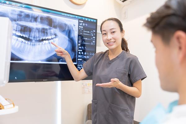 当院では歯科用CTを活用し、顎の骨の形や歯の位置、永久歯の萌出状況を立体的に確認しています。治療計画の精度向上につながり、安全性に配慮しながら被ばく量を最小限に抑え、より正確な診断を実現します。