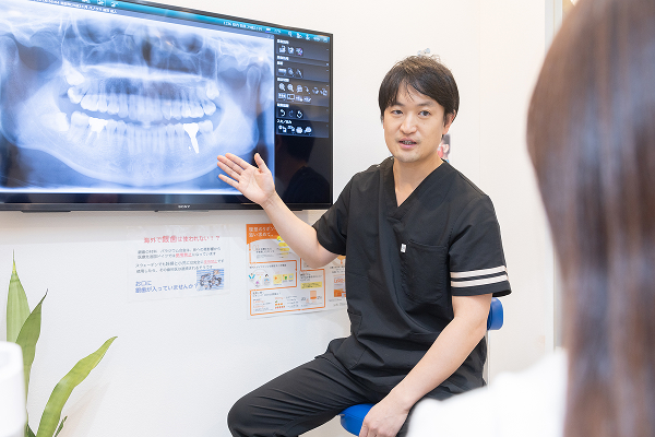 歯ぐきや傷口のケア方法を丁寧に指導し、食事・入浴・運動など、日常生活での注意点についても詳しくご説明します。安全な回復のためのサポート体制を整えています。